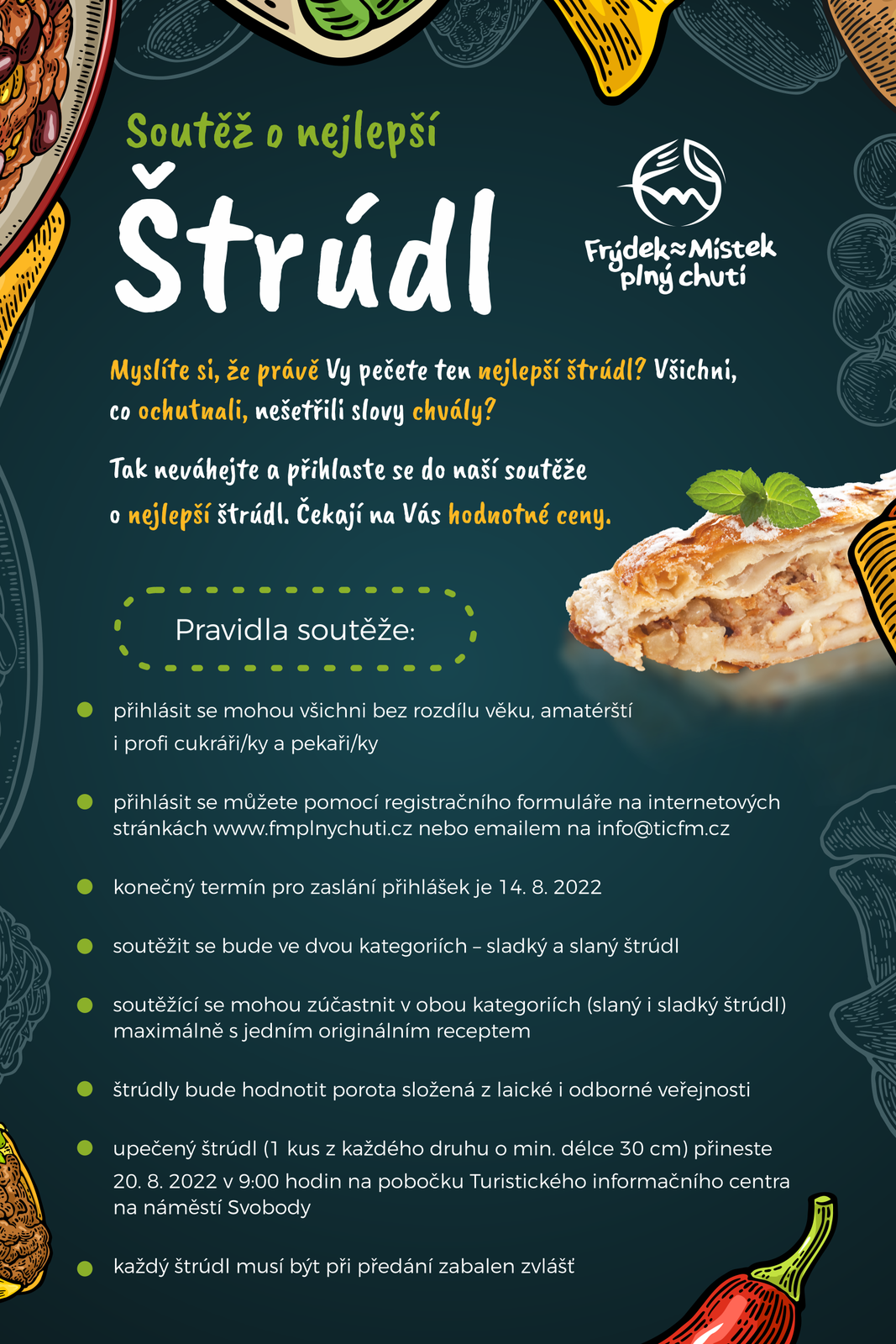 Úvod > Návštěvník > Aktuality > Frýdek≈Místek hledá opět ten nejlepší štrúdl! Budete to právě vy, kdo jej upeče?